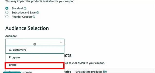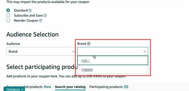 选择您希望适用本次优惠券的品牌。请注意,品牌下拉列表中仅会显示卖家是品牌所有者的品牌。