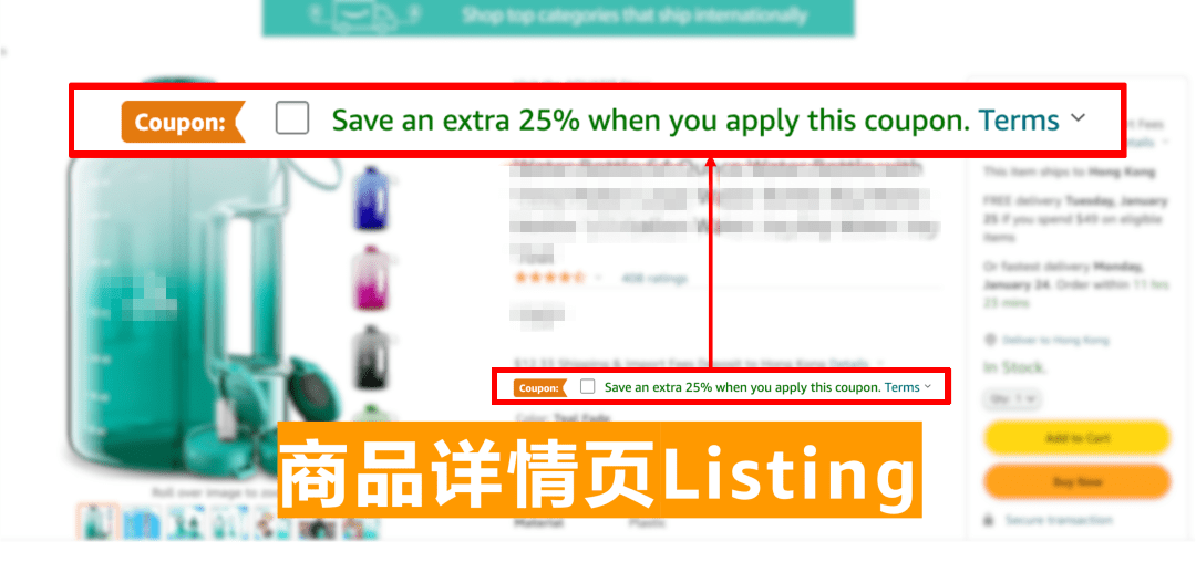 目前,品牌定制优惠券标记在亚马逊商城的展示位置与常规优惠券(Coupon)一致,共有以下4处👇