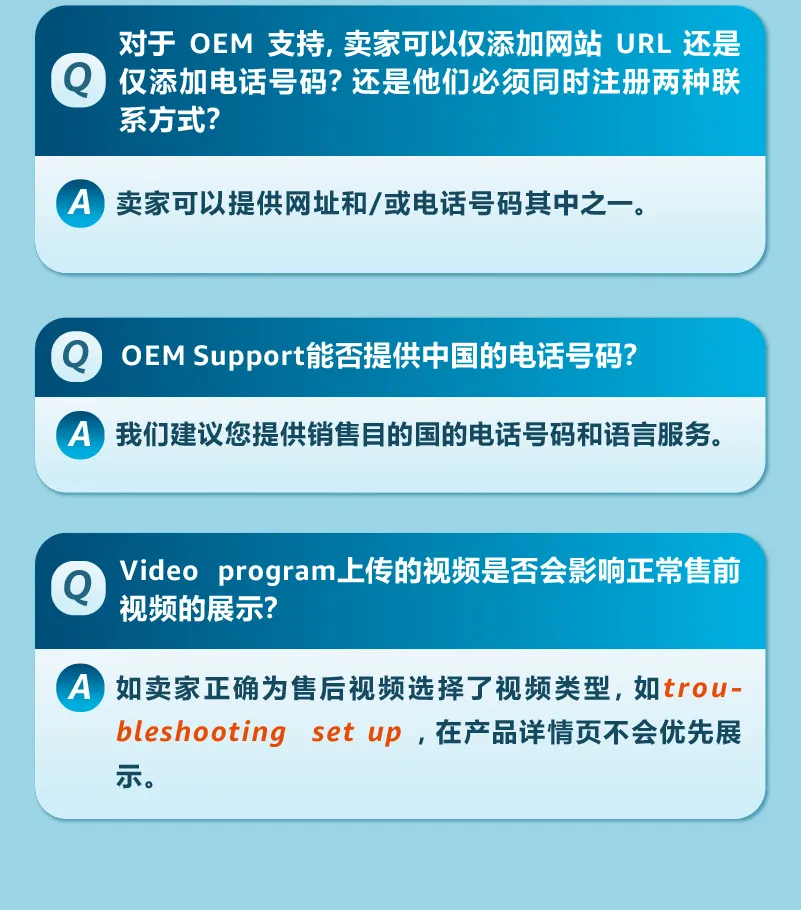 OEM售后服务是向顾客显示制造商的产品支持网站或产品支持电话,以便顾客直接联系制造商来获得商品相关的支持。快速解决顾客疑惑,提升购物体验。