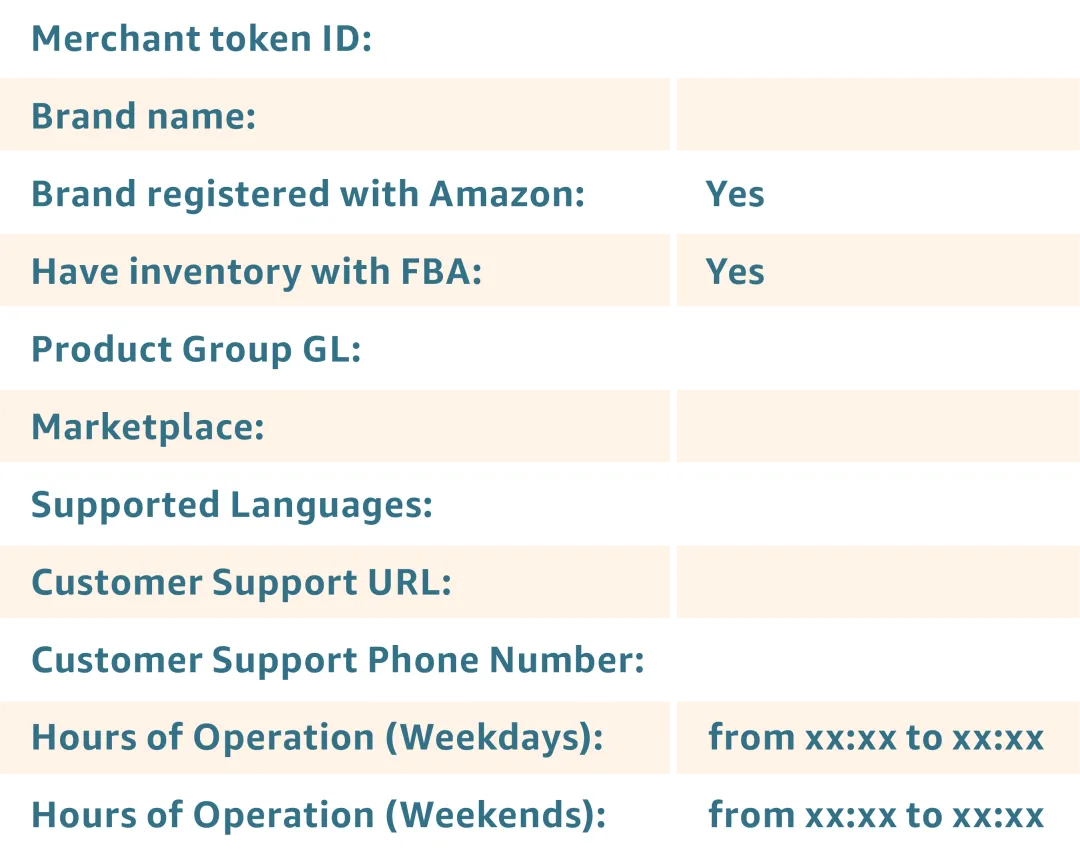 卖家可通过邮件注册产品操作文档服务,提供如下信息并发送至