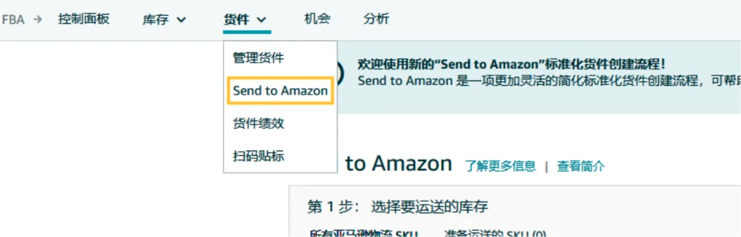 第三步 进入 Send to Amazon页面,开始创建亚马逊FBA货件