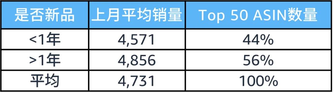 卖家B根据新品的平均销量和既有品相差无几,判断新品销售势头良好;且在热卖的产品中有44%是上市小于一年的产品,可以认为品类对新品友好,有机会取得成功。
