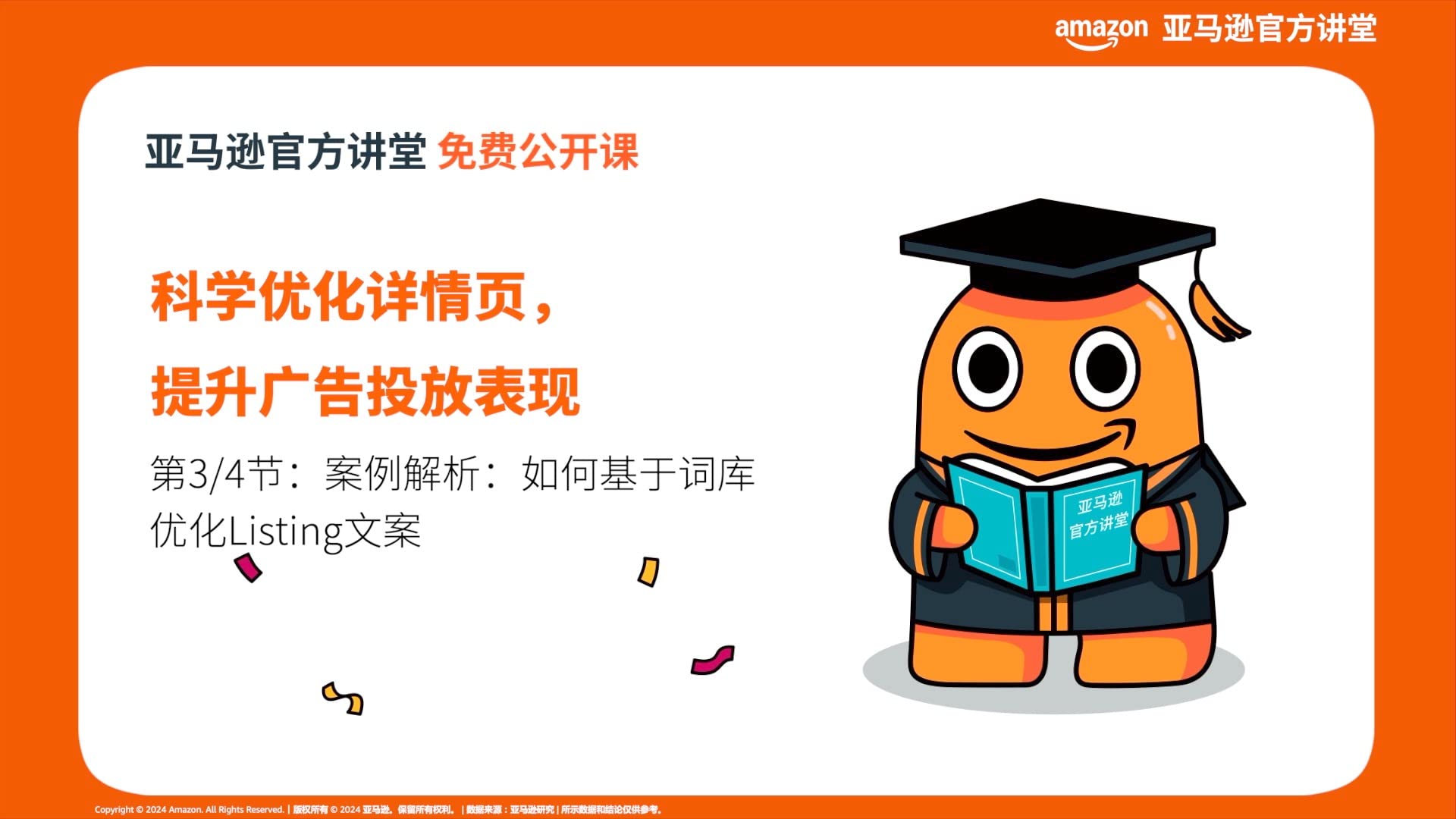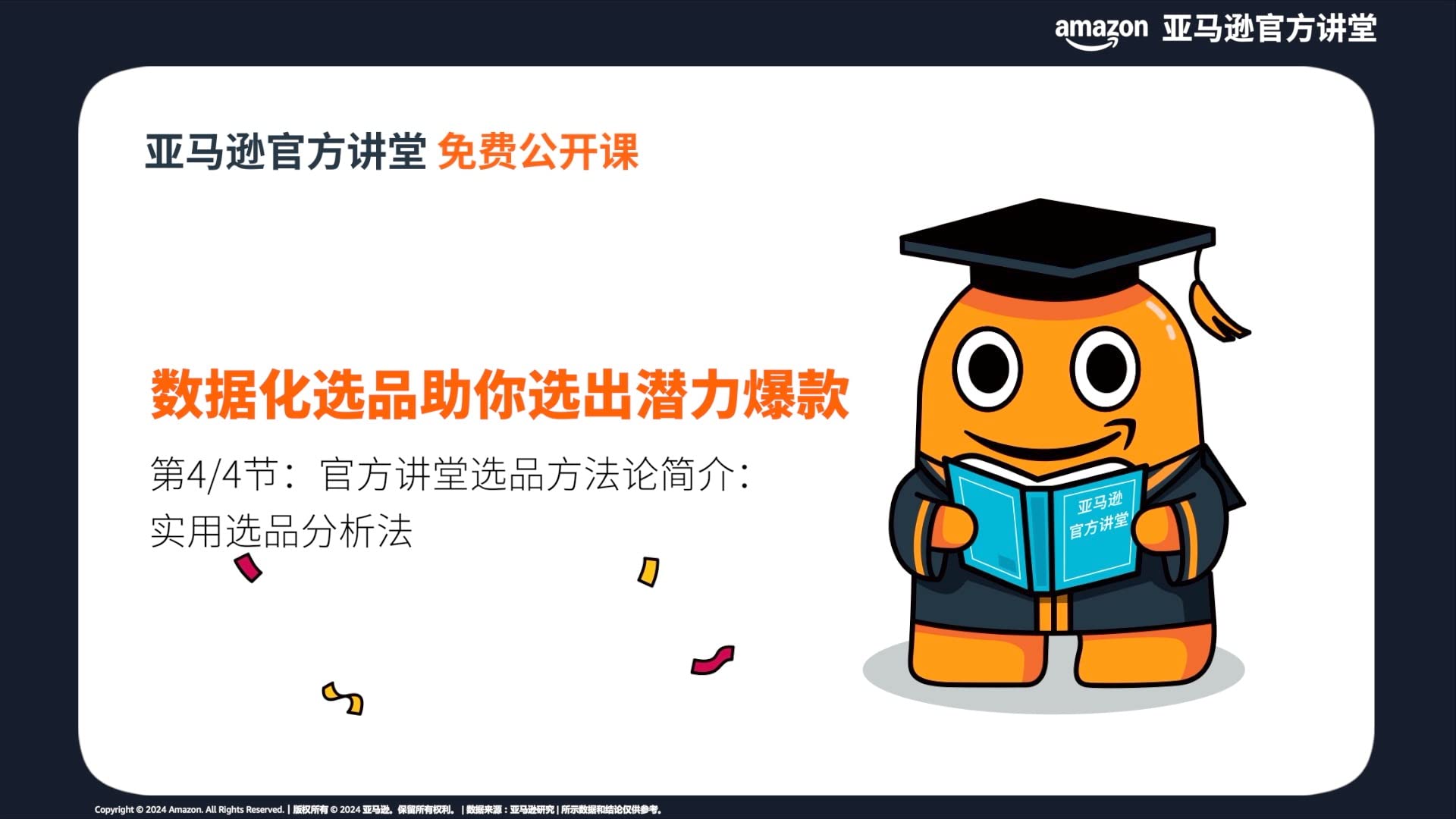 亚马逊官方培训,直击卖家核心需求,开发实战运营技巧,结合真实案例分析,以帮助卖家成长为唯一目的,无任何附加费用,专业有保障。