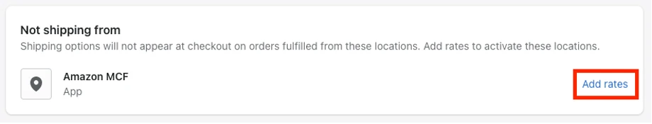 MCF 是一项独立的配送服务,不会影响或依赖其他配送服务。如果 "库存跟踪地点 "值为 "亚马逊 MCF",Shopify 就会使用亚马逊 MCF 位置来配送订单。
