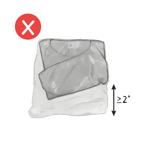 包装正确尺寸松弛度小于2英寸(5 厘米)