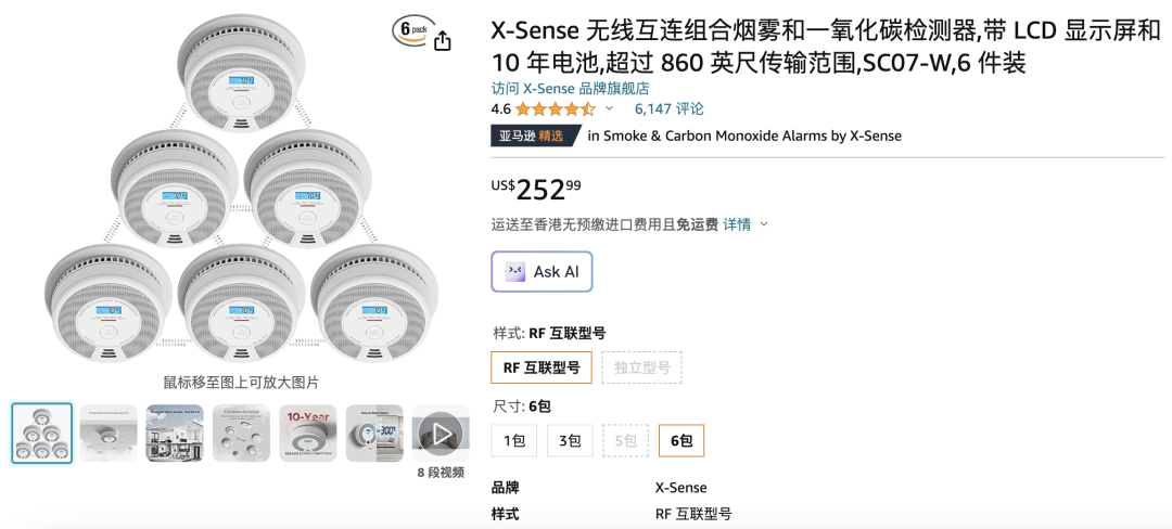 针对这一特点,X-Sense利用企业购的批量销售服务(ABS),并在出厂时就设置「硬捆绑」:除了单只装,还用三只装、六只装等不同数量的组合模式进行销售。